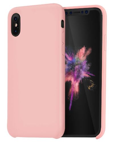 Generic - For Apple iPhone Xs/X Case - M7molge Liquid Silicone Case, Slim Shockproof Anti-Scratch Soft Silicone Lining Protective Cover for Apple iPhone Xs/X - Light Pink