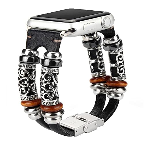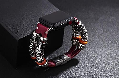 Generic - For Apple Watch 44mm / 42mm Series 1/2/3/4 Alloy Band Watch Strap Bracelet Smart Vintage Leather Embossed Ornament Wristband - Red