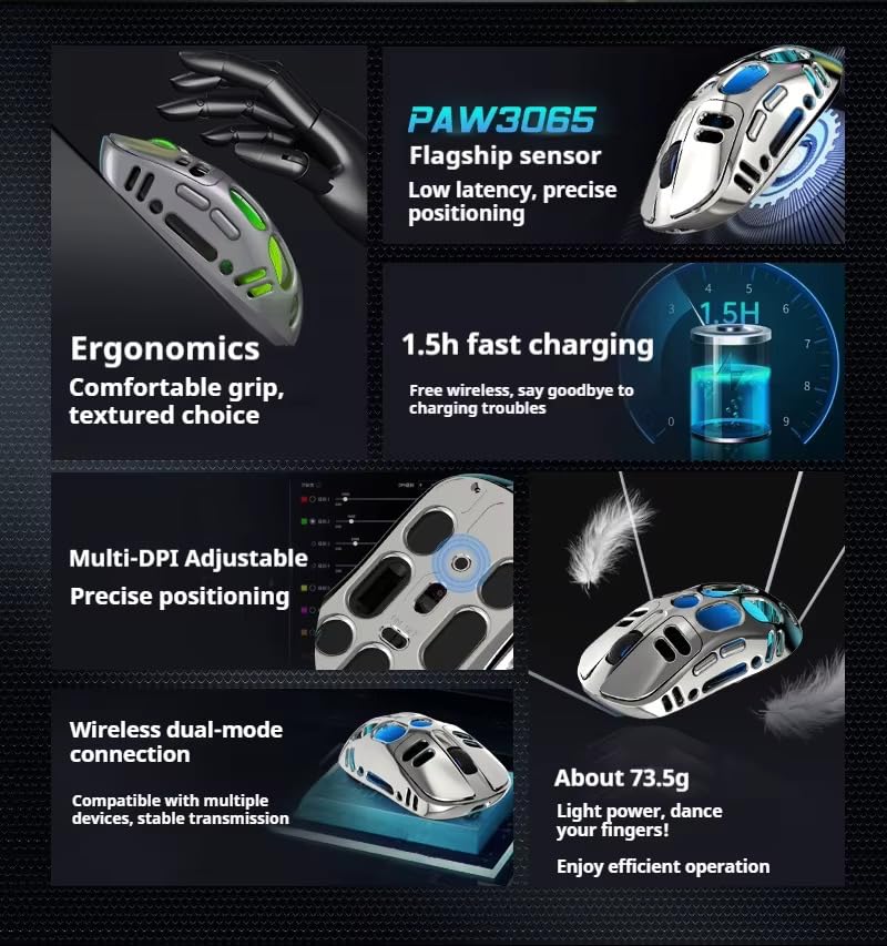 - Rechargeable Dual Mode Bluetooth / 2.4G Wireless Mouse