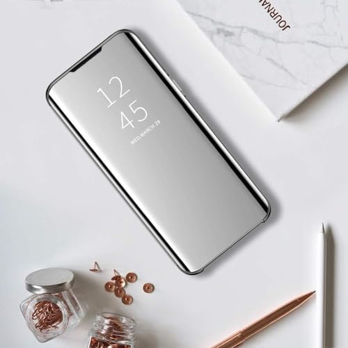 Generic - For Honor 90 Lite Clear View Flip Case, Without Sensor, Standing Mirror Full Protection Cover Compatible With Honor 90 Lite (6.7") (Silver)