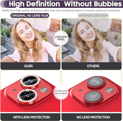 ELMO3EZZ - غطاء حماية لعدسة كاميرا موبايل ايفون 14 من الزجاج المقوى لموبايل لون احمر ماسي