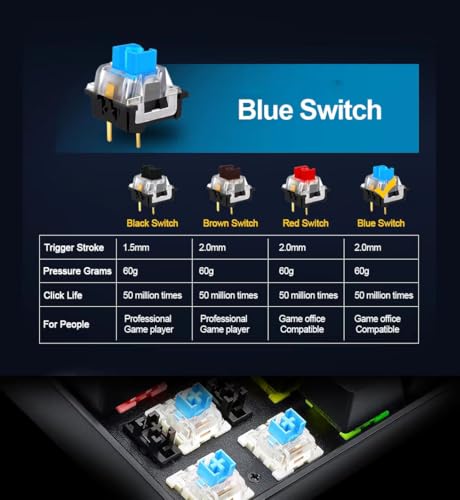 - مفاتيح زرقاء قابلة للتبديل السريع - يوفر المفتاح الأزرق بالملمس الناعم ردود فعل صوتية رائعة عند الكتابة. صُممت المفاتيح لتدوم طويلًا بمعدل 50 مليون ضغطةً.