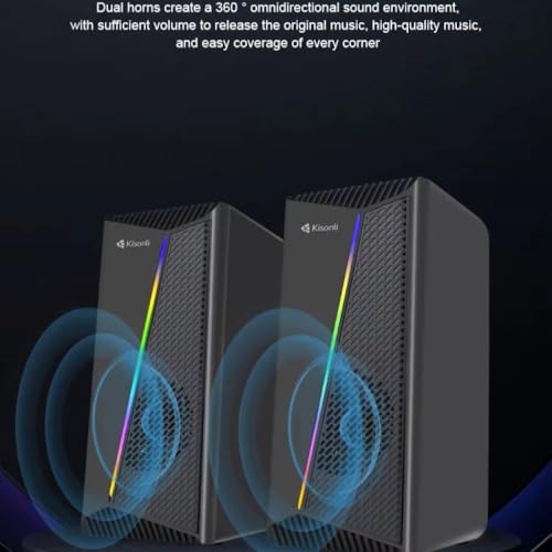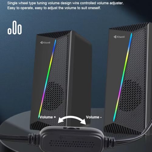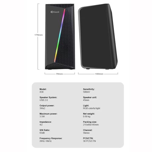 Generic - For Kisonli Multimedia Computer Speaker Wired – 6W (3W*2.0 Channel Stereo) – Dynamic RGB Lighting - Wired USB 2.0 Power + 3.5 mm audio Jack – for Gaming/Music/Laptop, Mobile | Black (X30)