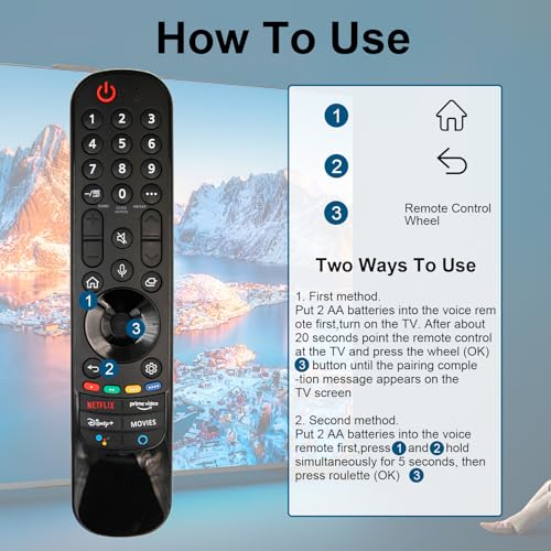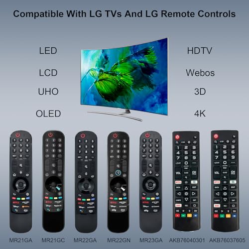 - Universal Compatibility & Easy Pairing: Effortlessly replaces Magic Remotes including MR24GA, MR23GA, MR22GN, and MR21GA. For lg magic remote smart tv control compatible with all LG OLED, QNED, NanoCell, and UHD 4K and 8K Smart TVs. Simply insert 2 AA batteries, point towards the TV, press OK, and the remote auto-registers within 20 seconds—no complicated setup required (batteries not included).