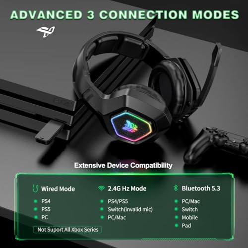 Generic - سماعة رأس B100 3 أوضاع (لاسلكية/بلوتوث 5.3/3.5 ملم سلكية)- ار جي بي- مشغل 50 ملم- ميكروفون بخاصية إلغاء الضوضاء- 1000 مللي أمبير في الساعة حتى 20 ساعة لبلاي ستيشن 5/4 والموبايل من اونيكوما (لون أسود)