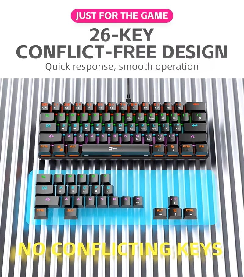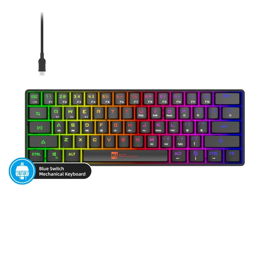 Generic - For R8 1037 60% Mechanical Gaming Keyboard (Arabic/English) – Rainbow LED Backlit – 61 Keys Key – Blue Switches –Double injection key caps Illumination – USB Wired For PC | Black