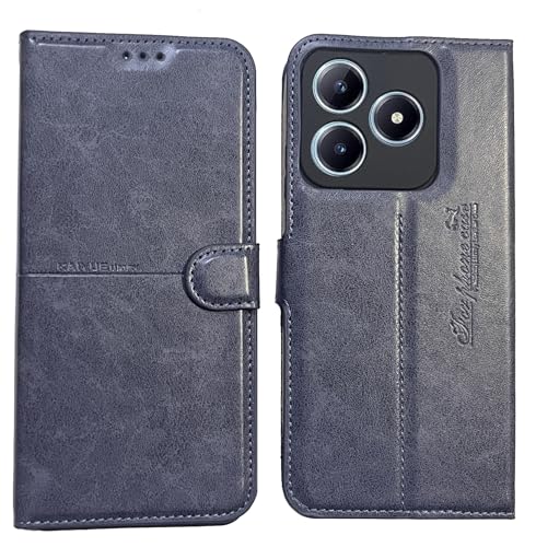 Generic - (For RLM C63) Kaiyue Full Cover Faux Leather Flip Case for Oppo Realme C63 /Realme C61 Cover Case Kickstand Full Coverage With camera Protection (Blue)