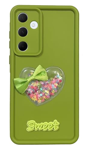 Generic - جراب خلفي من السيليكون الناعم ممتص للصدمات البولي يوريثين الحراري لحماية الكاميرا مع جليتر على شكل قلب لموبايل سامسونج جالاكسي A35 اخضر