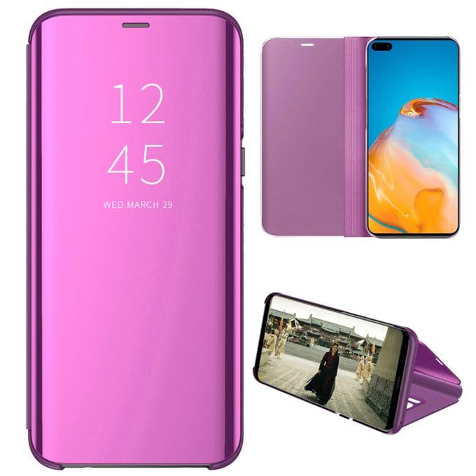 Generic - For Samsung Galaxy A05 Clear View Flip Case, Without Sensor, Standing Mirror Full Protection Cover Compatible Samsung Galaxy A05 (6.7") (Purple)