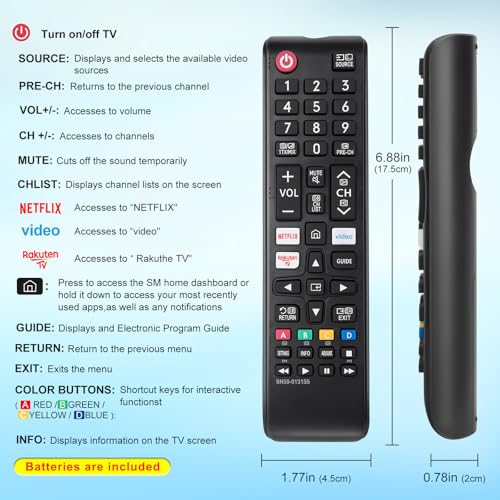 • 【Applicable Type】This infrared replacement remote works with all Samsung Smart TV, LED, LCD, HDTV, 3D, Series TV,Compatible with All Samsung Series TVs. We offer you an authentic details same as we advertised.