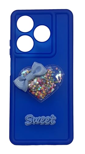 Generic - جراب خلفي من السيليكون الناعم ممتص للصدمات من البولي يوريثين الحراري لحماية الكاميرا مع جليتر على شكل قلب لموبايل انفنيكس سمارت 8 (ازرق شفاف)