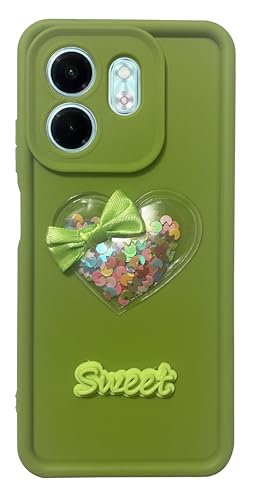 Generic - (For smart 9) Back Cover Soft Silicon Bumper TPU Case Camera Protection With Heart Glitter For Infinix Smart 9 Case Cover (Green)
