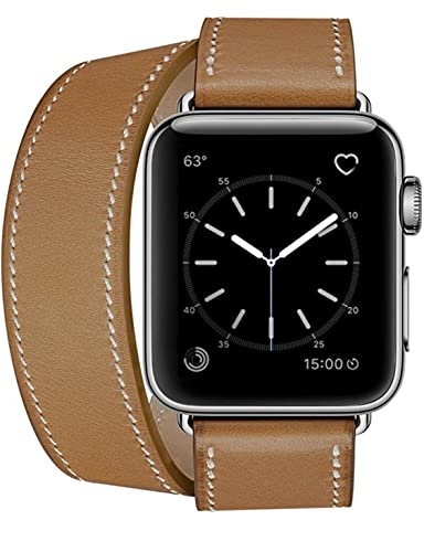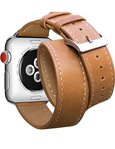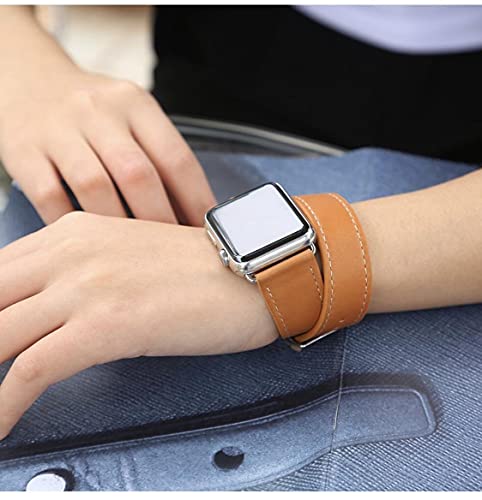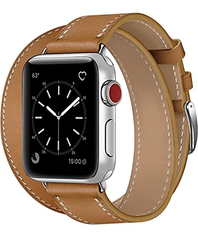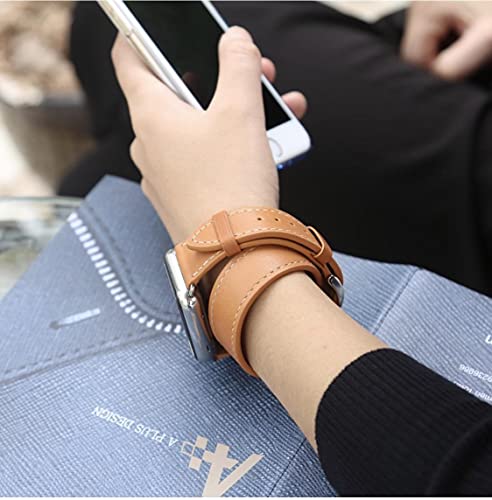 MARGE PLUS - سوار ساعة ذكي بديل دبل تور من الجلد الاصلي 42 ملم من مارج بلس يتوافق مع ساعة اي-ووتش الذكية