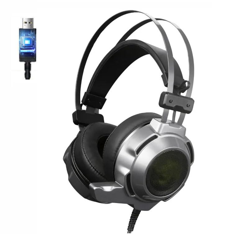 Generic - For TechnoZone K39 USB Gaming Headset RGB 7.1 Virtual Surrounded Sound Headphone - Dual 50mm Drivers - DEEP BASS - Noise Reduction mic - In Body Control For PC | Silver