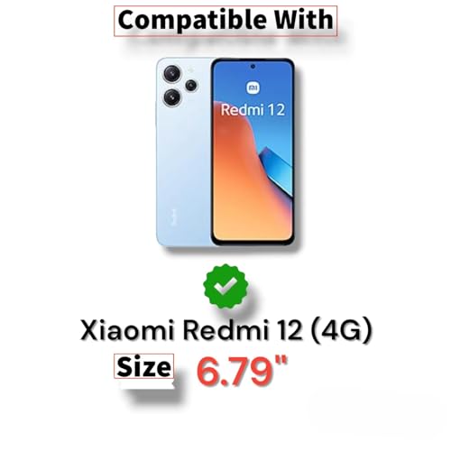Generic - جراب حماية جلد قابل للطي بفتحة للكروت وقفل مغناطيسي بحزام مع طبقة داخلية من السيليكون والبولي يوريثين المقاوم للحرارة متوافق مع موبايل شاومي ريدمي 12 شبكة الجيل الرابع 4G (6.79 بوصة)، (لون أسود)