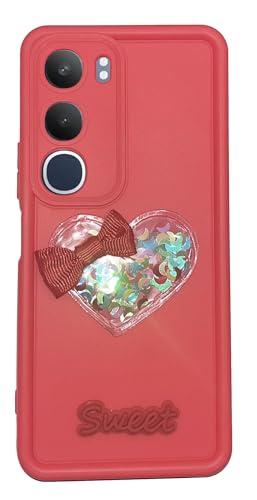 Generic - (For Y19s) Back Cover Soft Silicon Bumper TPU Case Camera Protection With Heart Glitter For Vivo Y19s Case Cover (Red)