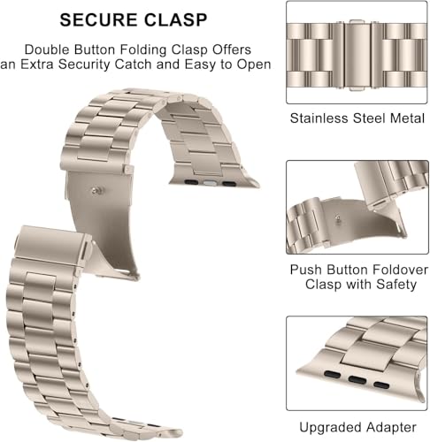 Generic - FOR3ON Compatible with Apple Watch Strap 45mm 44mm 42mm Business Stainless Steel Metal Straps Men Women Link Band with Case Compatible,