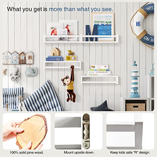 Forbena - Forbena Floating Nursery Book Shelves for Wall Set of 4, White Wall Bookshelf for Kids Room, Small Wood Book Shelf Wall Mounted for Baby Teen Boys Girls Bedoom Bathroom Toy and Decor Storage