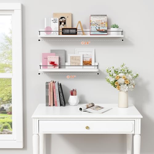 Forbena - Forbena Floating Shelves for Wall 24 Inches Long, Modern White Wall Shelving Unit for Bedroom, Wood Hanging Shelf for Kitchen Bathroom Living Room Office Organizers and Storage (White and Grey)