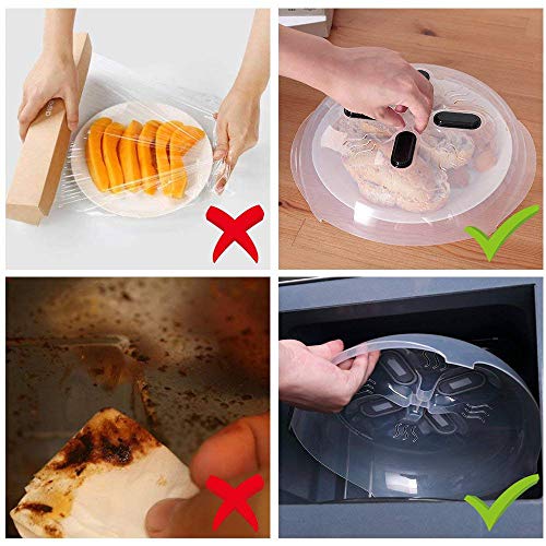 - SCIENTIFIC DESIGN Built in steam vents that help to heat food evenly.Its size is 11.8 inch,and that fits most plates,bowls and platters.