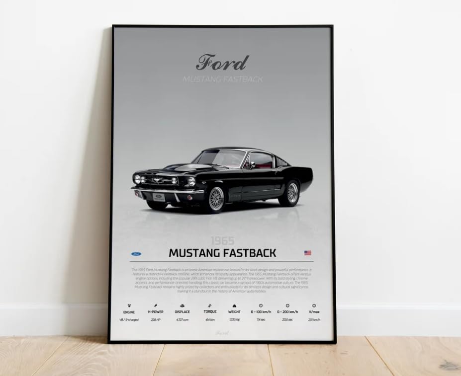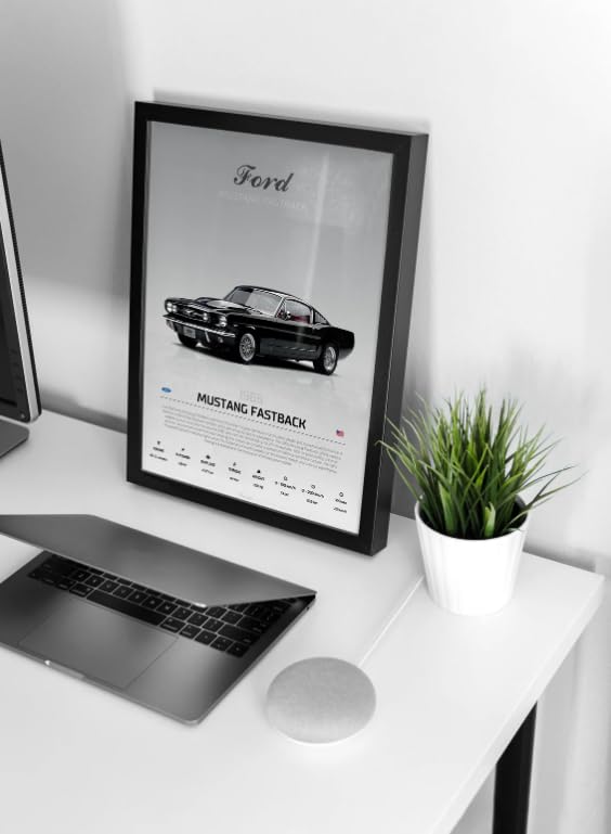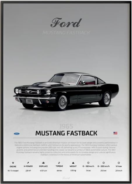 Generic - فورد موستانج فاست باك 1965 طباعة سيارة عضلية ملصق خارقة رياضية فن حائط ديكور رقمي مطبوع اسود 40*50 سم