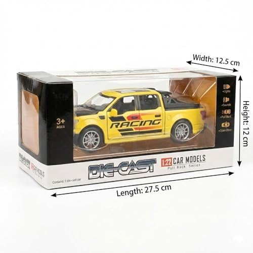 Generic - Ford Raptor F150 Die Cast Model Pull Back Model with Lights & Sound 1:22 Scale - Yellow - HCL-804