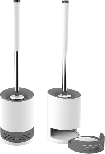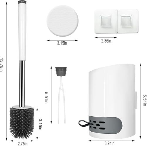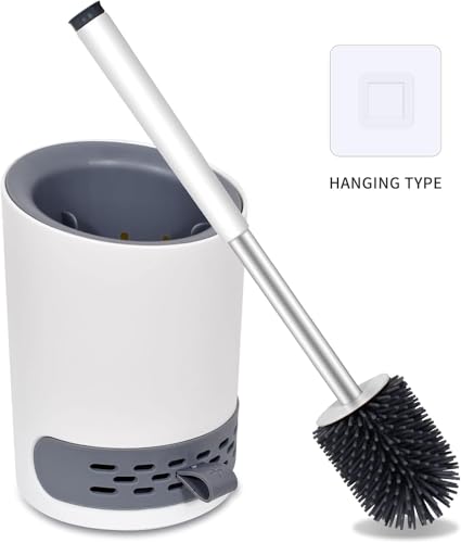 Generic - فوريرا فرشاة تواليت سيليكون متطورة مع مقبض ستانلس ستيل طويل، حامل جداري لاصق ودرج تصريف مع قرص منعش مضاد للبكتيريا لأفضل تنظيف للحمام