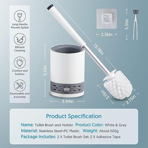 - ✅ 【تصميم مريح وخفيف الوزن】 الفرشاة خفيفة الوزن وسهلة التحكم، مما يسهل تنظيف جميع الزوايا الصعبة في المرحاض والحمام دون مجهود إضافي أو تعب. ⏳