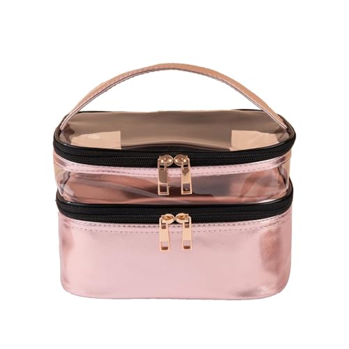 Generic - حقيبة مستحضرات التجميل الجلدية المقاومة للماء 2 في 1 مع سحاب مزدوج ومقبض حمل للمكياج والعناية بالبشرة والاكسسوارات ومنظم مستلزمات السفر من فوريرا