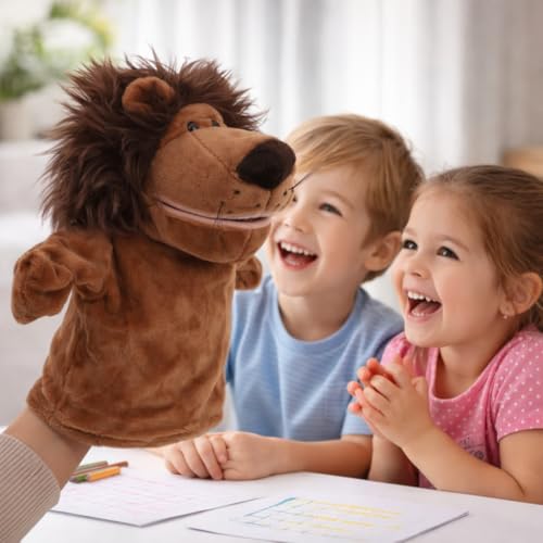 Generic - Forest Animal Hand Puppet Soft Plush With Movable Mouth Arms For Storytelling Role Play Teaching Preschool Interactive Learning Puppet Friends Birthday Gift Educational Fun (Lion)