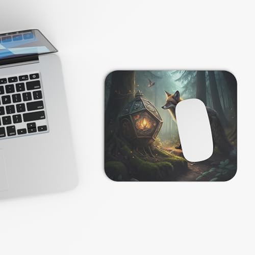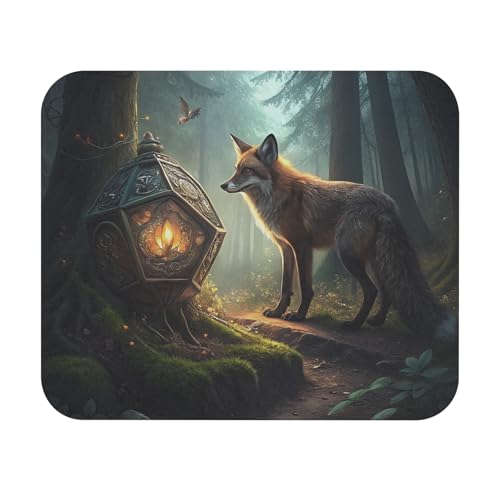 Generic - قاعدة ماوس بتصميم ثعلب الغابة - قاعدة ماوس فنية بتصميم فانوس غامض، حصيرة مكتب غير قابلة للانزلاق للكمبيوتر واللاب توب