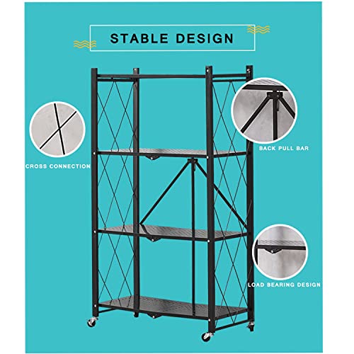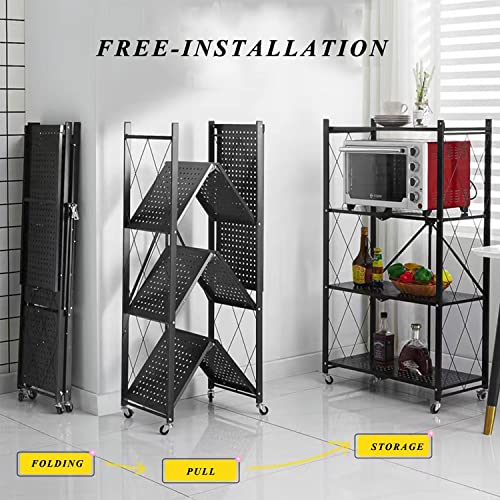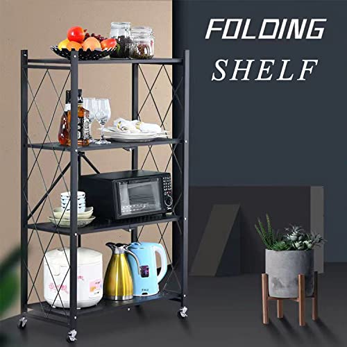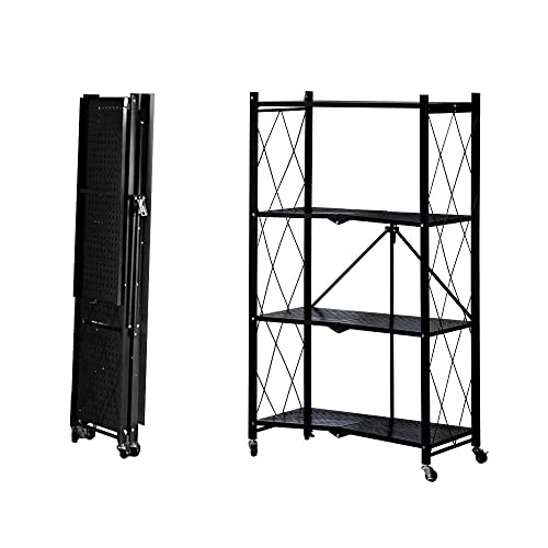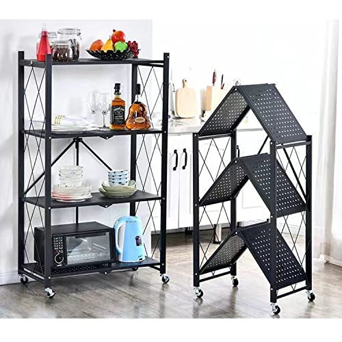 Foret - Foret Foldable Shelf Metal Display Rack Bookshelf Kitchen Shelves Wheels Storage