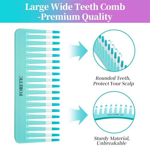 Foretic - مشط كبير بأسنان واسعة لفك تشابك الشعر، مناسب للشعر الكيرلي والمبلل والجاف من فوريتيك