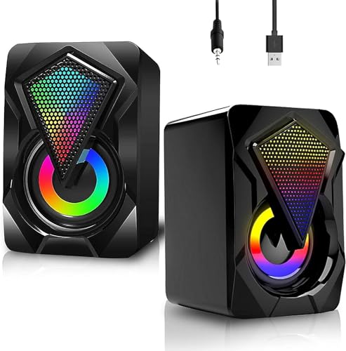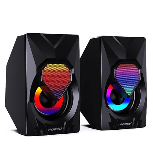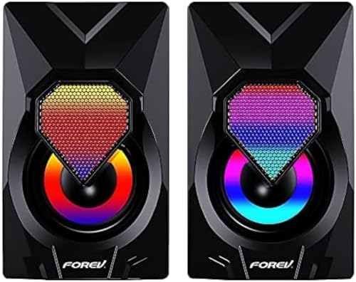 Generic - Forev FV-209 Computer Gaming Speakers - 3W*2 RGB Lights Wired Stereo Mini - 3.5mm Jack + 2.0 USB Powered For Gaming/Movie/Music/PC/Laptop