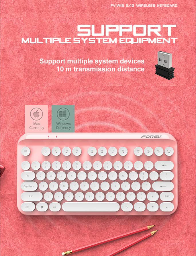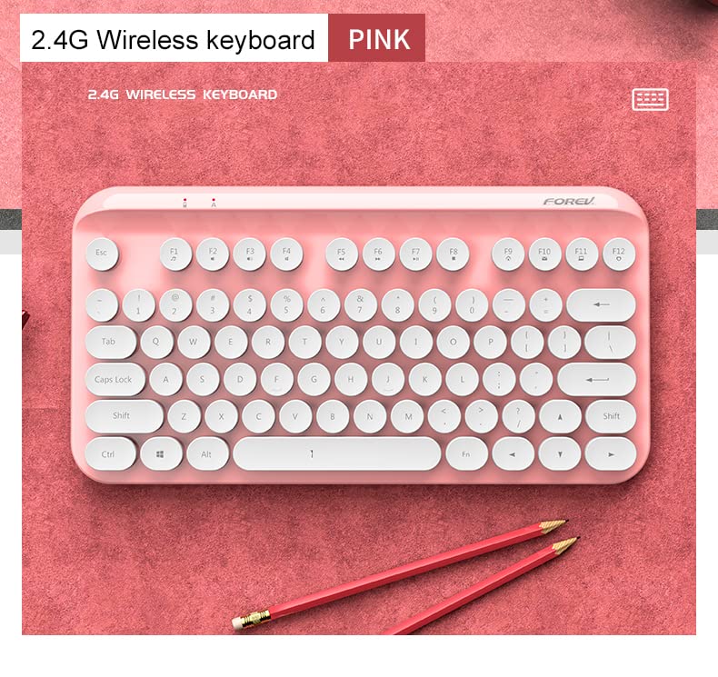 Generic - Forev FV-WI8 HighEnd 2.4G Wireless Mini Keyboard With USB Receiver | Round Keycaps | Silent Keys | For PC/Mac | Pink