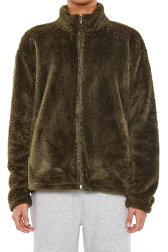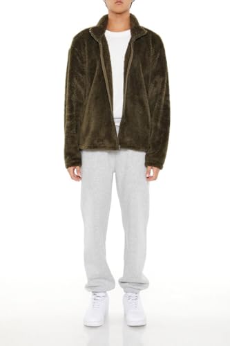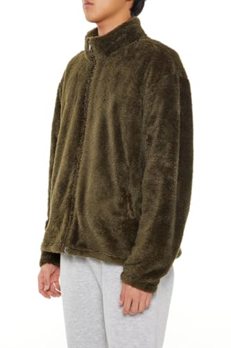 Forever 21 - FOREVER21 Men Faux Shearling Zip-Up Shacket