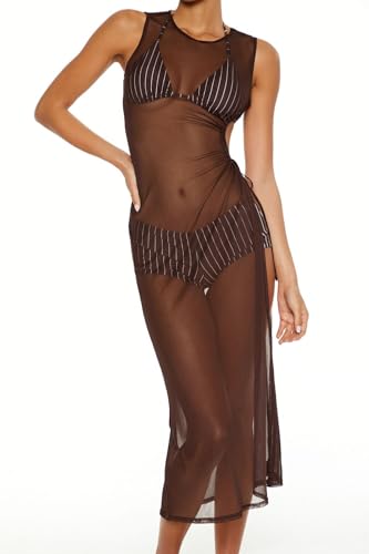 Forever 21 - فستان اسنشيالز متوسط الطول للسباحة بفتحة جانبية للنساء من فوريفر 21