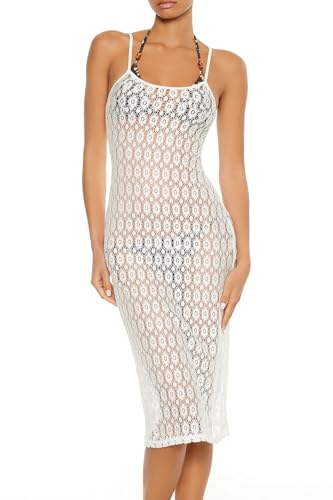 Forever 21 - FOREVER21 Women Floral Crochet Swim Cover-Up Midi Dress