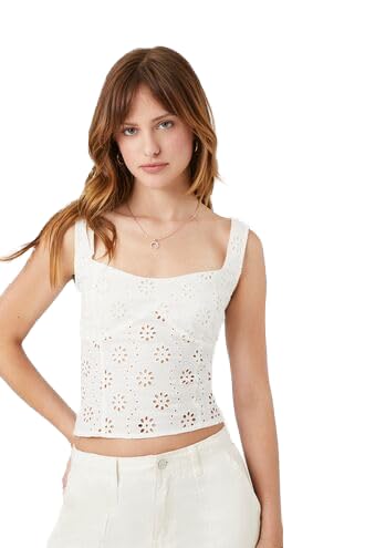 Forever 21 - FOREVER21 Women Floral Eyelet Lace-Up Tank Top