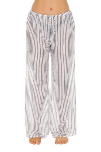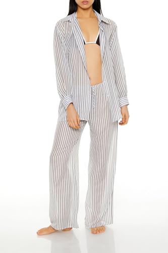 Forever 21 - FOREVER21 Women Striped Lightweight Wide-Leg Swim Cover-Up Pants