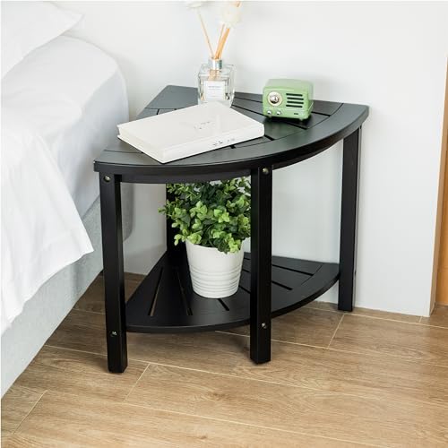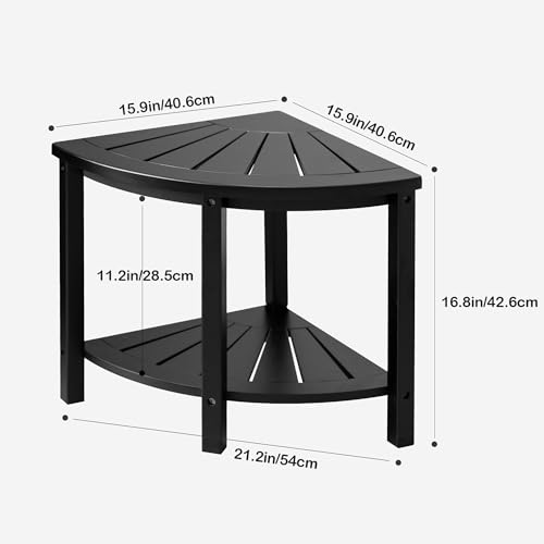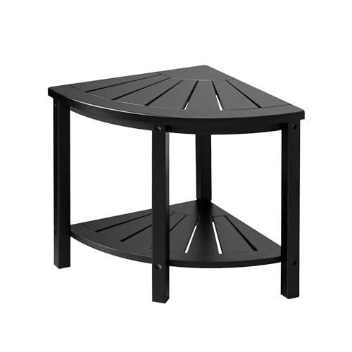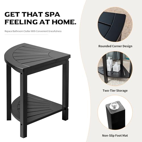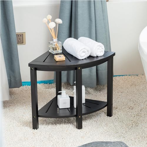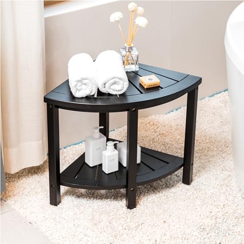 Forevich - Forevich Bamboo Shower Bench Corner with Shelf Waterproof Shower Stool for Inside Shower Corner Shower Seat for Indoor or Outdoor Black