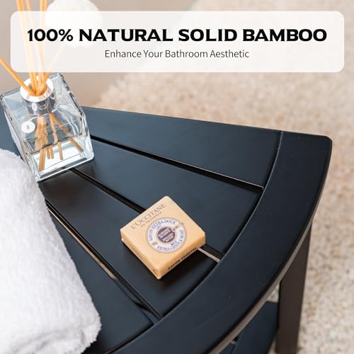 - 【Natural Bamboo Materials】: This corner bench is made of 100% bamboo material which is durable, environmental and healthy for your body. The naturally waterproof allow the bench to be used in the shower.
