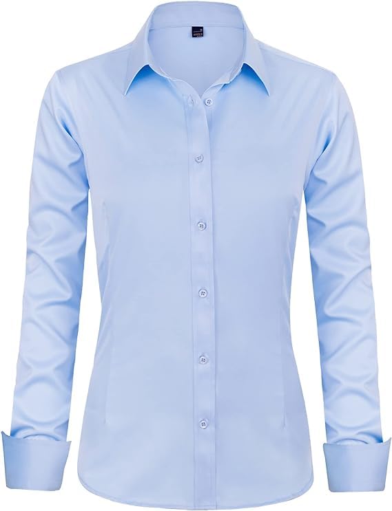 Generic - Formal Solid Baby Blue Long Sleeve Buttoned Shirt, Womens
