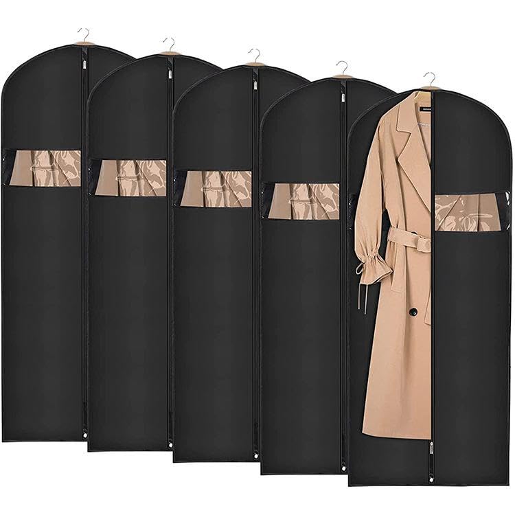 - Comes in a value-packed set of five long-sized covers measuring 60 x 140 cm, ideal for storing long garments like dresses, coats, and uniforms, and can double as furniture covers when flattened.