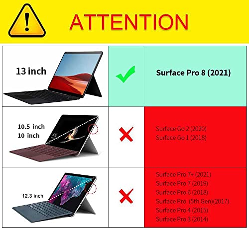 - مصمم لجهاز سيرفس برو 8 13 بوصة فقط، لا يمكن استخدامه لأي موديلات أخرى. يعمل مع أو بدون غطاء سيرفس برو 8.