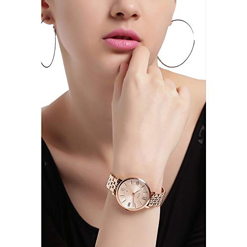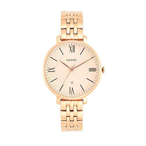 Fossil - ساعة نسائية دائرية جاكلين بمينا وردية انالوج ES3435 من فوسيل، ذهبي، بسوار