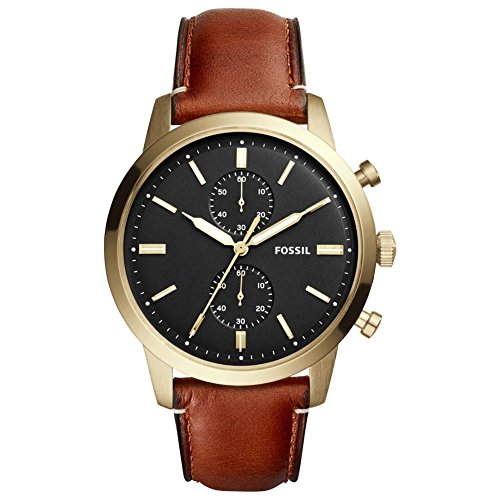 Fossil - ساعة رجالي بمينا اسود وسوار جلد من فوسيل - FS5338، انالوج بعقارب