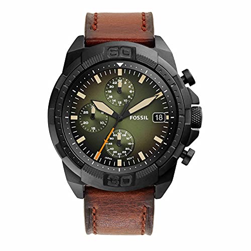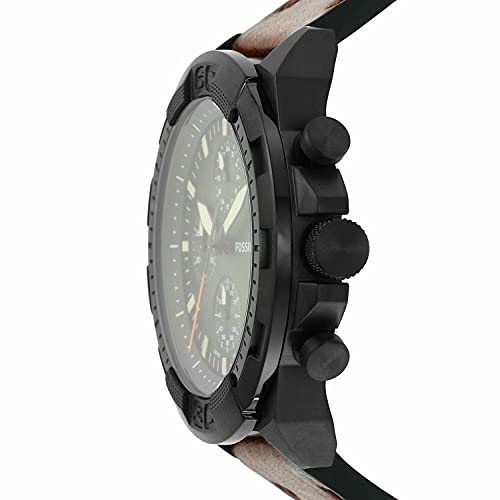 Fossil - Fossil Men's Bronson Stainless Steel Quartz Dress Chronograph Watch, Black, Luggage, One Size, 44 mm Bronson Chronograph Leather Watch - FS5856
