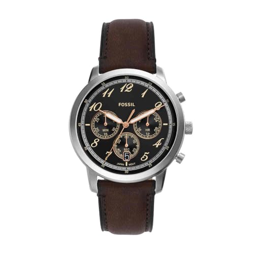 Fossil - FOSSIL Neutra Watch for Men, Chronograph movement with Stainless steel or Leather strap, Tan and Brown, 44 mm