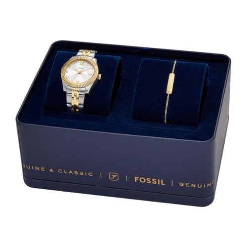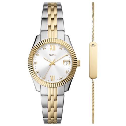 Fossil - ساعة فولاذ مقاوم للصدأ للنساء من فوسيل، فضي/ذهبي، 32 ملم، ES5313SET